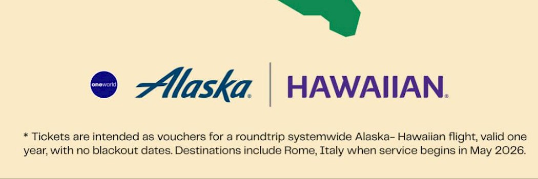 CHANCE TO WIN AN ALASKA / HAWAIIAN AIRLINES ROUND TRIP TICKET