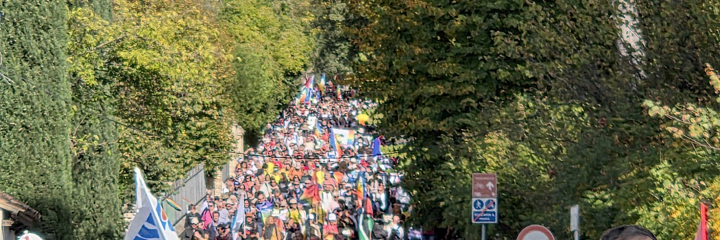 Recently, I happily participated in the annual 24 kilometer March for Peace & Fraternity from Perugia to Assisi. I walked along with over 200,000 people, specifically my 21 year old Chinese classmate (you can really get to know somebody walking the road together for 5 hours!). This march was founded by Perugino Aldo Capitini in 1961, who was influenced by Mahatma Gandhi's teachings of nonviolence.